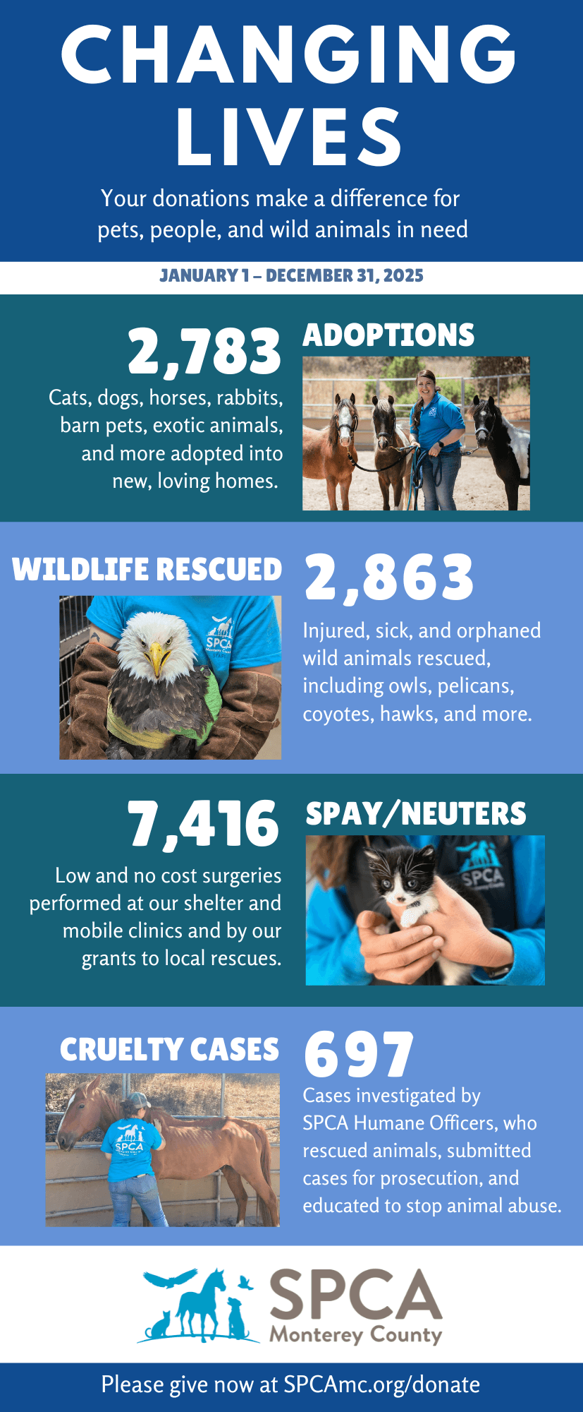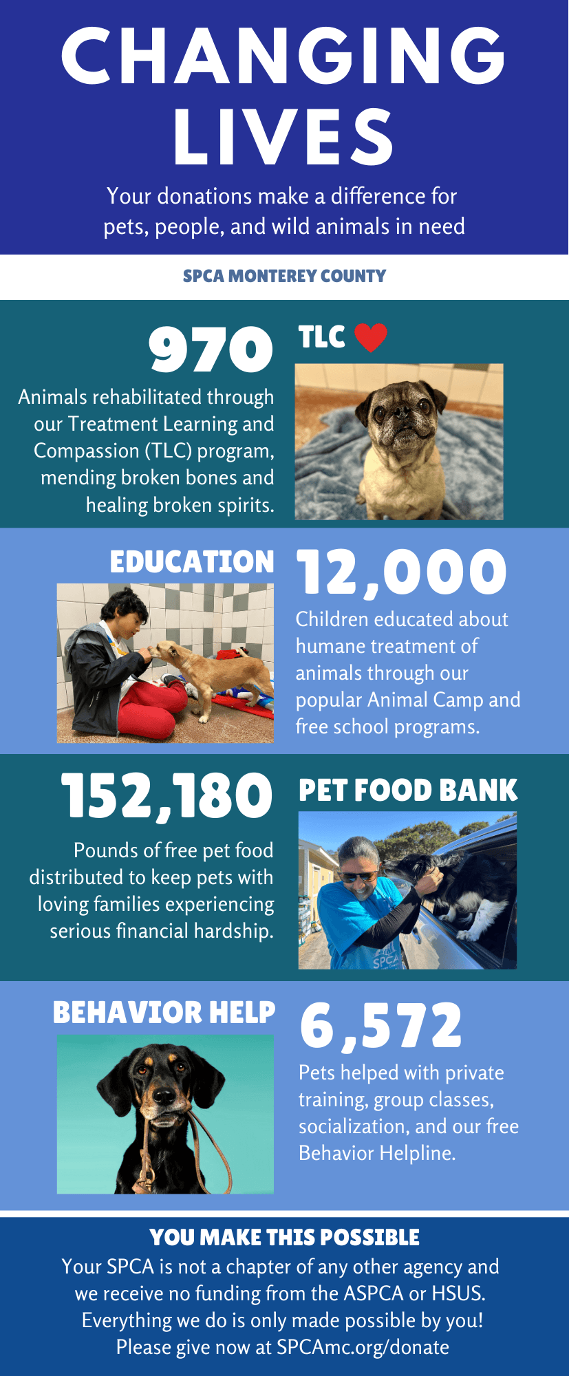 Thank you for supporting your local, independent SPCA Monterey County! Everything we do to help pets, people, and wildlife is only made possible by you. Here are just a few examples of how you made a difference for the animals in our community.