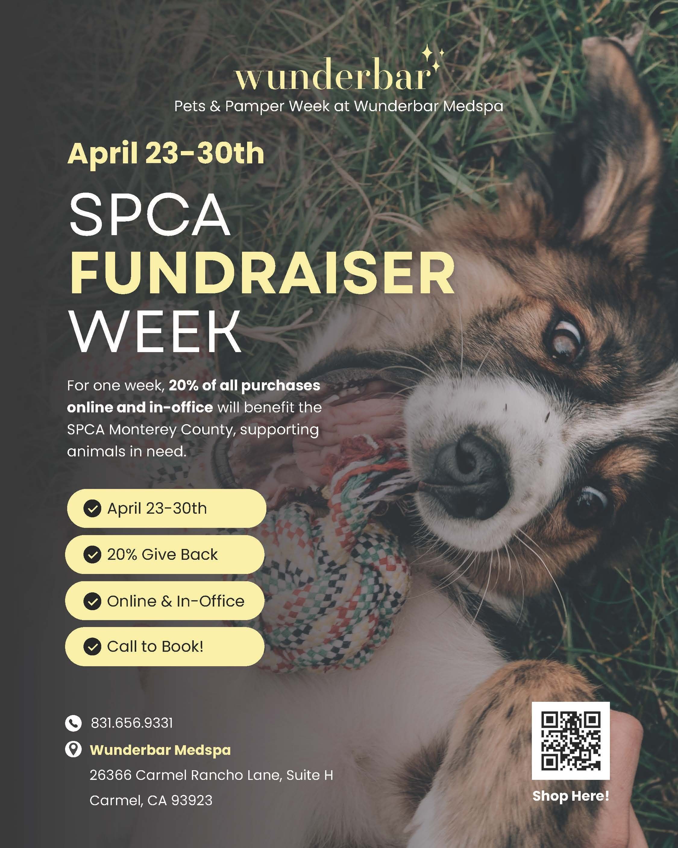 We are proud to announce a special week-long fundraising event in partnership with Wunderspa Carmel. To support our lifesaving mission, Wunderspa will donate 20% of all proceeds generated from both their Carmel location and their online store. This contribution applies to all professional spa services and retail products, making it the perfect time to invest in your well-being while supporting the animals in our community.